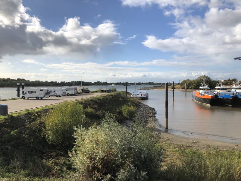 Terug in Minnie Winnie toveren we binnen no-time een super Kaiserschmarrn op tafel en lunchen we op de camperplaats Kleve. Voor vertrek dumpen we ons grijswater - even alles uit die vijf euro halen 🤣 - en dan hebben we Doornenburg als volgende stop gekozen. De avond willen we de camperplaats aan de Rijnoever in Tolkamer proberen, dus blijven we wat in de buurt van de grens en de Rijn. Om Doornenburg in de Lingewaard te bereiken rijden we eerst via Emmerich terug naar Gelderland en moeten dan in Pannerden de veerpont over het Pannerdens Kanaal nemen. Leuk met de camper; voor een paar eurie staan we aan de overkant en zijn we al snel in Doornenburg. Waarom Doornenburg? Hier staat kasteel Doornenburg, waar vroeger de tv serie Floris is gefilmd. Nostalgie dus.. leuk om te zien! Er is ook hier een (gratis) camperplaats waar we parkeren en daarna lopen we over de ophaalbrug het binnenterrein op. Het kasteel zelf is helaas op maandag gesloten maar je krijgt er toch een aardig beeld van. We lopen er nog eens helemaal omheen langs de rivier de Linge en willen dan nog een stop maken bij Fort Pannerden, ook hier in Doornenburg. Dat fort maakte deel uit van de Hollandse Waterlinie. Is echter ook dicht vandaag en gezien de dreigende luchten en de enorme afstand die we lopend zouden moeten overbruggen om een gesloten bezienswaardigheid te zien, besluiten we om de pont weer terug te pakken en rijden we naar Tolkamer (bij Lobith).