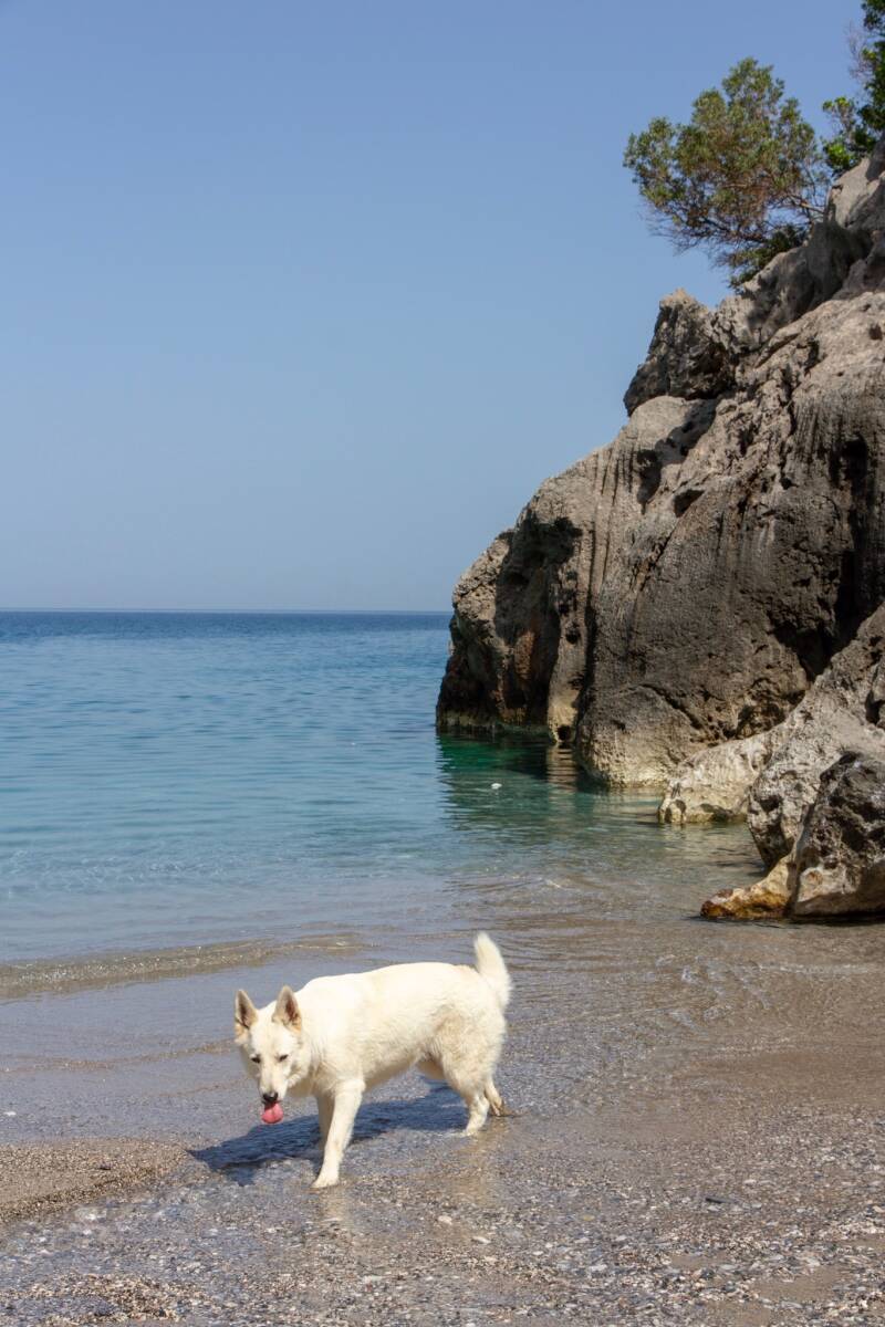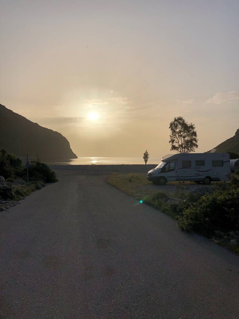 We hebben een luier-dag vandaag, worden relaxed wakker aan de baai beneden bij Reichea, en zien het langzaam dag worden. Pasen in Griekenland, we nemen er nog maar eens een eitje bij. Eerst vertrekken onze Zwitserse buren, daarna ook de Italianen die daarachter stonden, en zodoende komt een mooi stekkie vrij, direkt aan het strand. We verkassen de bus en doen verder niet zo heul veul anders dan een kleine wandeling over het strand, een ochtend-duik, een middag-duik (nog steeds kkkkoud). We zien lokale bewoners aankomen voor een tijdje op het strand, anderen gaan hier een stukje rotsklimmen, en wij luieren gewoon verder. We zien iedereen ook weer vertrekken aan het eind van de middag en het begin van de avond. Inmiddels hebben we ook nieuwe Zwitserse buren met een buscamper. Er staat nog 1 Griekse VW bus klaarblijkelijk met wat panne, want er wordt al een paar uur driftig gesleuteld, gestart en onder het busje gelegen. Hopenlijk lukt het ze om weg te komen, want het is hier behoorlijk afgelegen en mobiel bereik hebben we nog steeds niet. Onze Zwitserse buren hebben zich over de Grieken ontfermd. Morgen kiezen wij het hazenpad in de richting van Monemvasia.