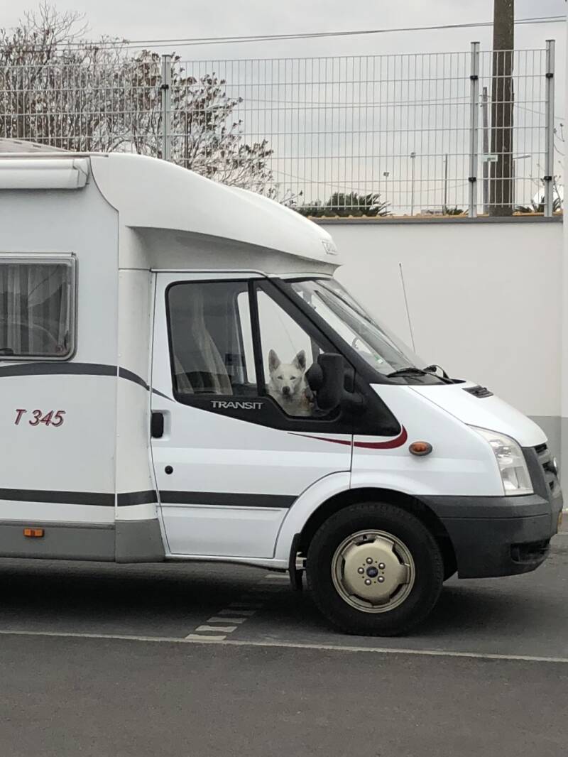 Abby houdt de wacht terwijl wij de boodschappen doen