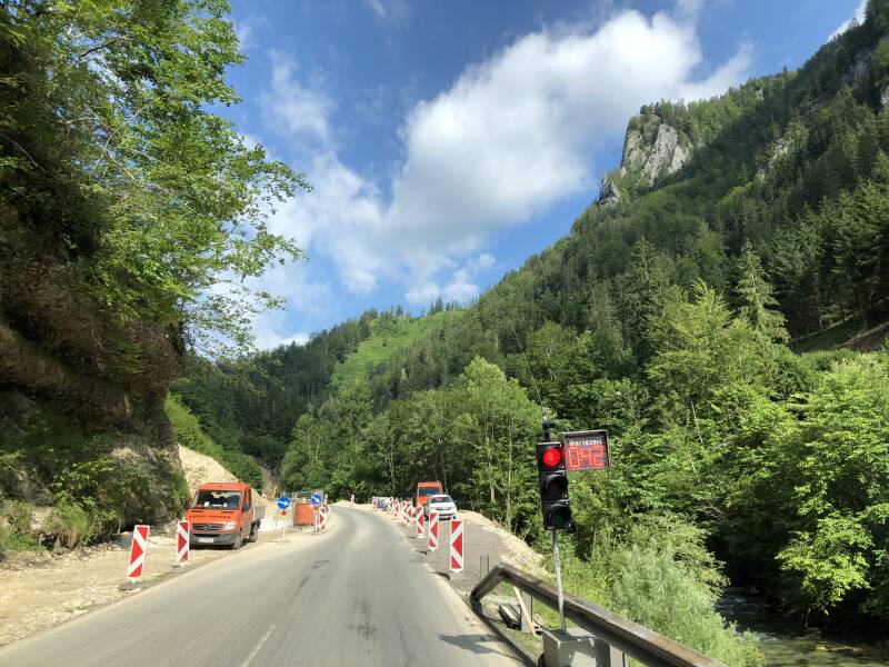 Gisteravond heb ik nog wat verder gezocht naar plekken waar we misschien makkelijker met de kano in het water kunnen komen dan hier op de camping. Het pad loopt nogal steil naar beneden, en daarnaast adviseerde Catweazle de campingbaas dat je ongeveer 1 kilometer heen en weer kunt varen, tot aan de dam. De rivier de Steyr is afgedamd tot een stuwmeer, Stausee Klaus. Ook daar zou het idyllisch moeten zijn, en ik vond een bootverhuur waar we mogelijk kunnen parkeren en de boot te water kunnen laten. De route ernaartoe loopt via de Hengstpass en moet erg mooi zijn. Aldus gaan we weer op pad. Een prachtig stukje Steiermark hier, en de Hengstpass is inderdaad schitterend. Het lijkt tot nu toe ook minder toeristisch, en minder druk, dan de populaire gebieden in Tirol. Terwijl de natuur op z’n minst net zo mooi of zelfs mooier is. De Hengstpass is een schilderachtige oude verbinding, en werd in vroeger tijden voor het transport van ijzererts gebruikt. Aan de “andere kant” van de pas komen we in het dal van de rivier de Steyr aan, en volgen we een stukje snelweg. Bij Klaus an der Phyrnbahn slaan we af en bereiken we al snel de bootverhuurder aan de Stausee. Gelukkig is er voldoende parkeerruimte voor de bus. We moeten nog wel een stukje lopen met de boot, en blazen ‘m aan de waterkant pas op. Dan kiezen we het ruime sop, in de richting van de Elisabethsee, zuidwaarts gaat het. Mooi kanoën is het hier weer, rustig water, wel wat wind, maar wat een mooie en rustieke omgeving. De wanden zijn met name van kalksteen en op sommige stukken kun je onder de rotsen doorvaren. Er zijn ook een paar afstekers te maken, zij-armen op, en op 1 van die plekken houden we pauze. We zitten hier pal onder de Steyrling