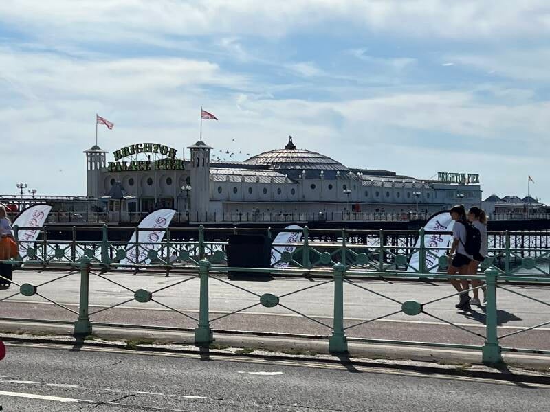 Weer belooft het een stralende dag te worden. Arundel wordt wakker en wij kiezen het hazenpad. De eerste stop maken we in Shoreham aan de kust. Hier is een Lidl en die hebben lekkere broodjes, ook in de UK. Dan toeren we een stuk langs de kust via Brighton. Enorme Victoriaanse gebouwen sieren de boulevard, maar voor zover we het kunnen zien ook de straten daarachter. Het is er een drukte van jewelste met allerlei badgasten. We passeren de Brighton Pier, maar dit is aan ons niet besteedt. Nou zou parkeren hier sowieso al een beetje een issue worden, dus het blijft bij Brighton zien in het voorbijgaan. Vorige week hadden we onszelf beloofd om bij Beachy Head en de Seven Sisters op de kliffen te wandelen, dus tuffen we die kant op. Het is bijkans nog drukker dan laatst en op de parking bij Seven Sisters is geen plek meer. Net daarvoorbij komt ons een engelse camper tegemoet die wel heel erg het midden van de (smalle) weg houdt en ik zie het aankomen, wijk zover mogelijk uit, de berm in en rem wat af, maar zij knallen met een rotklap onze rechter buitenspiegel aan barrels. Stoppen gaat hier niet want het is veel te smal en druk dus rij ik door naar de eerste parkeerhaven een paar honderd meter verder. Daar is gelukkig plaats en we bekijken de schade. De andere camper is in geen velden of wegen meer te bekennen, maar moet ongetwijfeld ook schade hebben. Onze spiegel hangt alleen aan de bedrading van de (geïntegreerde) richting aanwijzer te bungelen… gelukkig hebben we ducttape aan boord en we plakken de spiegel zo goed en kwaad weer vast aan de houder. Thuis zoeken we het wel met de verzekeraar uit. Bij Beachy Head vinden we gelukkig ook een plek op de parking en lopen we een heel eind langs de kliffen. Supermooi hier!