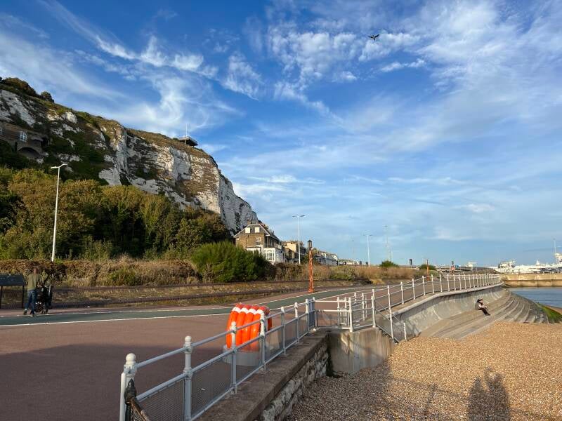 08.00 uur op zondag dus zullen vroeg opstaan voor het inchecken. We hebben nog gecheckt of we vanavond eventueel mee konden maar daarvoor vroeg DFDS de hoofdprijs, we wachten gewoon tot morgenochtend. We vinden een plek langs de “Marine Parade” in Dover waar we mogen overnachten. Er paradeert inderdaad allerlei volk en we zijn in gezelschap van meerdere campers die wachten op het vertrek van de ferry. De laatste avond in de UK..