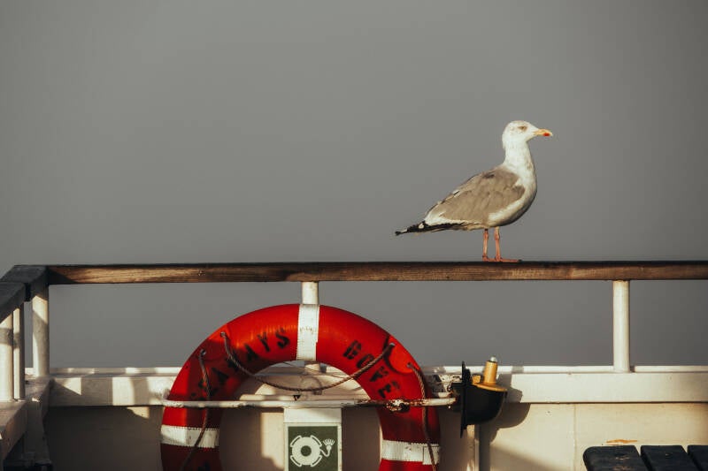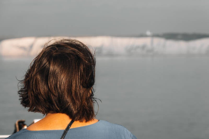 We mogen wachten tot het allerlaatst, zodat de hond zolang mogelijk in ons gezelschap kan zijn. Abby dient in de camper te blijven, en wij verkennen het schip, kijken op de buitendekken en maken wat foto’s. Het is behoorlijk mistig, maar dat maakt wel leuke plaatjes. Binnen nemen we koffie en leggen we een kaartje. De overtocht duurt maar twee uur dus binnen no time zien de de krijtrotsen bij Dover al opdoemen. Het aanmeren en lossen gaat gesmeerd en zo rijden we Dover uit. Aan de linker weghelft uiteraard. Dat went al weer snel, en na een paar rotondes weet je niet beter meer. Het plan was om naar Beachy Head en de “Seven Sisters” te rijden en daar wat te wandelen. Ernaartoe rijden is gelukt, wandelen moet een andere keer. De parkeerplaatsen waren allemaal voorzien van betaalautomaten die alleen op munten werken, en die hebben we nog niet gescoord. Beachy Head bewaren we voor het eind van de reis, denken we nu.