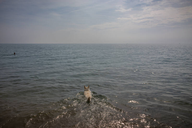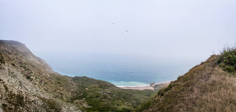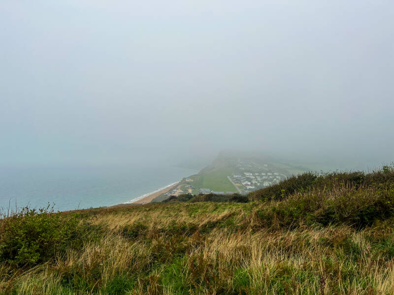 Camping Highland’s End dus, we waren hier lang geleden (15 jaar?) met onze caravan, en onze dochter Patty. Er is gelukkig plaats, maar alleen op de duurste hard standing pitches. We staan mooi (en recht) en na de lunch lopen we via de kliffen naar beneden, naar het strand van Eype. Het is een kiezelstrand en het ligt redelijk vol met badgasten. We zwoegen wat door de kiezels een stuk verder, waar het wat rustiger is en Abby te water kan. Het is bloedverziekend heet, en we wensten dat we zelf ook badkleding hadden meegenomen. Maar ja, wie denkt daaraan als je naar Engeland gaat? Het wordt er niet koeler op als we de kliffen weer moeten bestijgen. Maar de uitzichten vergoeden veel, zo niet alles. Wat is de kust hier mooi. Hoogtevrees moet je niet hebben, want bij de (af en toe ook afbrokkelende) kliffen staat alleen een bordje te vermelden dat ‘t dangerous is. We hadden ons een beetje gefocust op een diner bij Martin’s bar & restaurant op de camping, maar… op een dag als deze kan die natuurlijk op zondagavond alleen maar voor drankjes geopend zijn😂. Gelukkig hebben we altijd wat in de vriezer. Na de maaltijd maak ik nog een rondje met Abby. Plots wordt het enorm mistig en verdwijnt, als ik nog eens langs de kliffen loop, de camping onder een grijze deken. Het kan verkeren, met het weer in Engeland! Vanavond eens kijken of we een stukje Nederlands elftal kunnen ontvangen. Cross Fingers, want het is niet onze dag🤪.