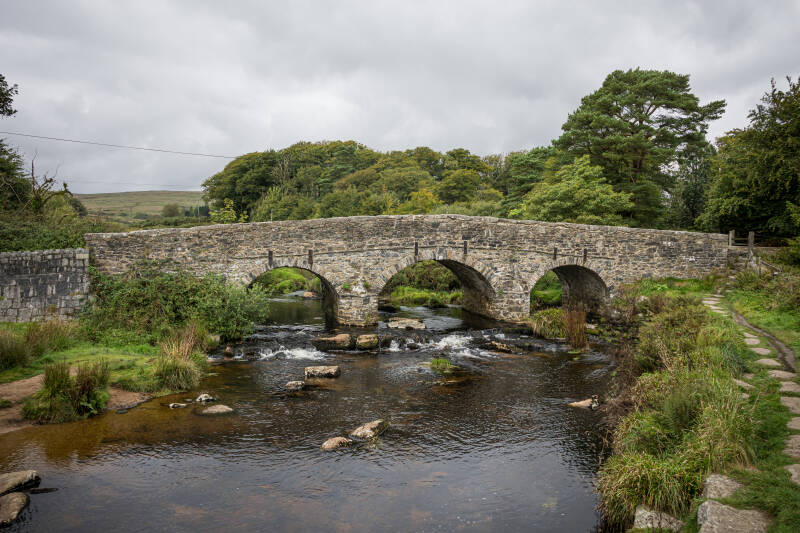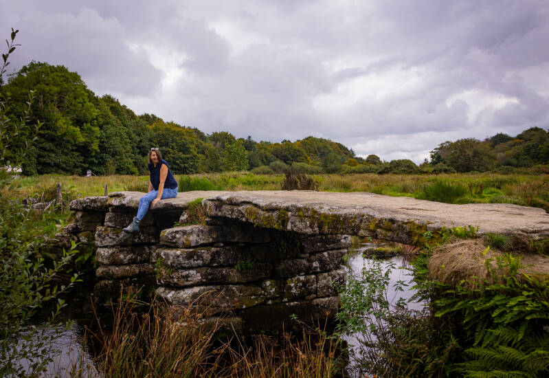 We stoppen nog bij Bennetts Cross, één van de oude navigatie stenen, en bij de Clapper Bridge, een brug waarvan men aanneemt dat ‘ie is gebouwd in de 13e eeuw. De nieuwe brug, waarover het verkeer nu nog rijdt, ligt ernaast, en ziet er uit alsof ‘ie er ook al een aantal eeuwen ligt. We vinden bij het postoffice een mini-winkel met Cornish Pasties, de lunch is voor mekaar.