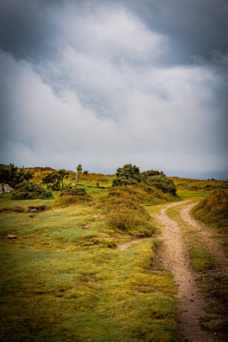 We besluiten de camping voor vannacht te zoeken, Langstone Manor. We krijgen een hardstanding vanwege de regen en installeren onszelf. Na de koffie wordt het toch nog droog, en besluiten we het hiernaast liggende moor op te lopen. Bestemming is het Windy Post Granite Cross, die we bereiken na een stevige klim. Ook hier mooie uitzichten, onder andere op Pew Tor en King’s Tor, beide te ver om nu nog naartoe te lopen. We vangen de terugtocht aan en op de camping vallen we het restaurant binnen en scoren eindelijk een fish and chips. Niet zomaar één, maar een beer buttered. Overheerlijk, en de toetjes ook al. We rollen bijna terug naar de camper. Dartmoor was geweldig.