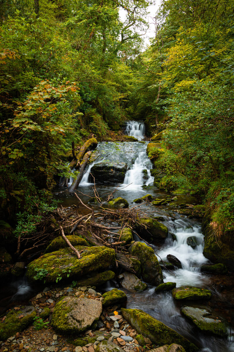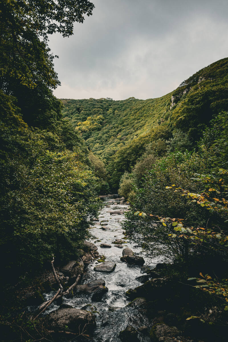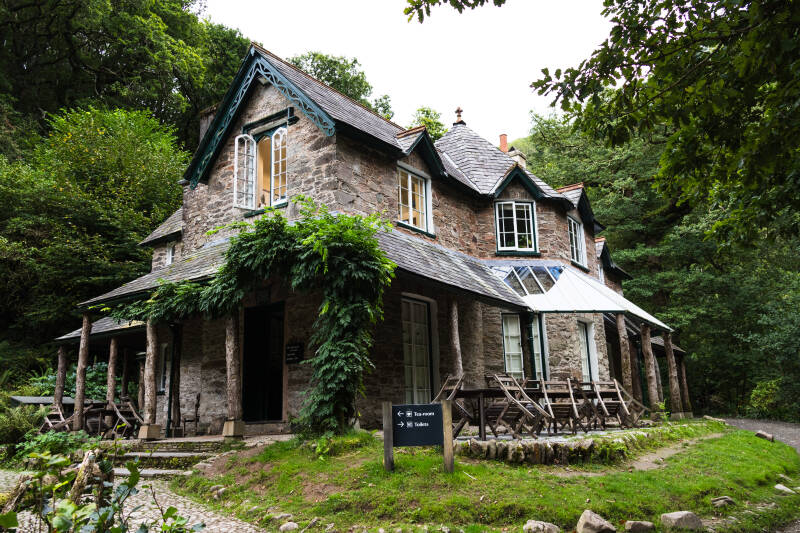 We lunchen in de camper en laten dan Abby de bus bewaken, terwijl wij een rondje langs de winkeltjes doen. De plaatselijke middenstand is goed gespekt en wij trekken verder naar het even verderop gelegen Boscastle. Een pitoresk klein havendorpje, en blijkbaar goed in trek bij de toeristen want er was geen plaats meer op de, overigens aanzienlijke, parkeerplaats. Boscastle zal dus moeten wachten op een ander bezoek, ooit in de toekomst. De Atlantic Highway is ons volgend doel, waarvan de naam doet vermoeden dat je mooie uitzichten op de Atlantische kust hebt. Voordat we zover zijn, moeten we een kilometer of tien binnendoor, maar dan ook echt binnendoor. Er is meer single lane dan dual lane, en na het voor de zoveelste keer inklappen van de spiegels omdat het anders niet past in de breedte met andere auto’s campers, bussen en vrachtwagens, laten we de rechter buitenspiegel maar gewoon ingeklapt tot de Atlantic Highway zich aandient. Deze hebben we gevolgd tot in Barnstaple, ik schat een goeie 50 kilometer, en hebben, heel in de verte, de Atlantische kust 2 x gezien. Waarom zo’n naam geven aan een weg, vraag ik me dan af. In Barnstaple moeten we richting kust via de A39, het vervolg van de befaamde Atlantic Highway. We raken er echter vanwege een wegomlegging de route een beetje kwijt, en zijn daardoor 3 x het stadje doorkruist. Gelukkig is 3 x scheepsrecht en zijn we uiteindelijk via een andere, zeer schilderachtige route aangekomen in ons laatste stopje voor vandaag. In Lynton, vlak aan de kust, bevindt zich een watervallen-kloof met de mooie naam Watersmeet. Het weggetje ernaartoe is mega-smal, mega-stijl, met mega-haarspeldbochten, en gelukkig ook mega-rustig. De parking is bijkans leeg, en de parkeerautomaat defect. Dat scheelt muntjes. Parkeren van motorhomes is verboden, zo lezen we, en het is er hier ook eigenlijk niet op ingericht. De parkeervakken zijn allemaal van het type achteruit inparkeren, en veel te kort voor onze bus. We parkeren er toch, wat kan er gebeuren na vijven op een bijna leeg parkeerterrein. De afdaling naar Watersmeet is een aanslag op kuit en knie, maar we zijn blij dat we hem hebben gedaan, want de watervalletjes, de riviertjes en het fraaie theehuis maken het zeer de moeite waard. Waar afgedaald wordt, moet ook beklommen worden en ondanks de temperatuur van een schamele 15 graden, staan we met het zweet in de haarpunten weer boven naast de bus, die gelukkig niet is weggesleept.