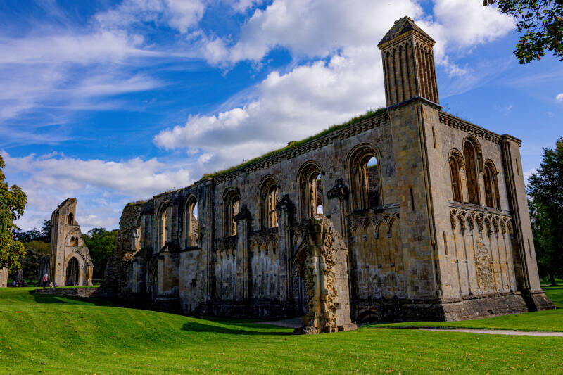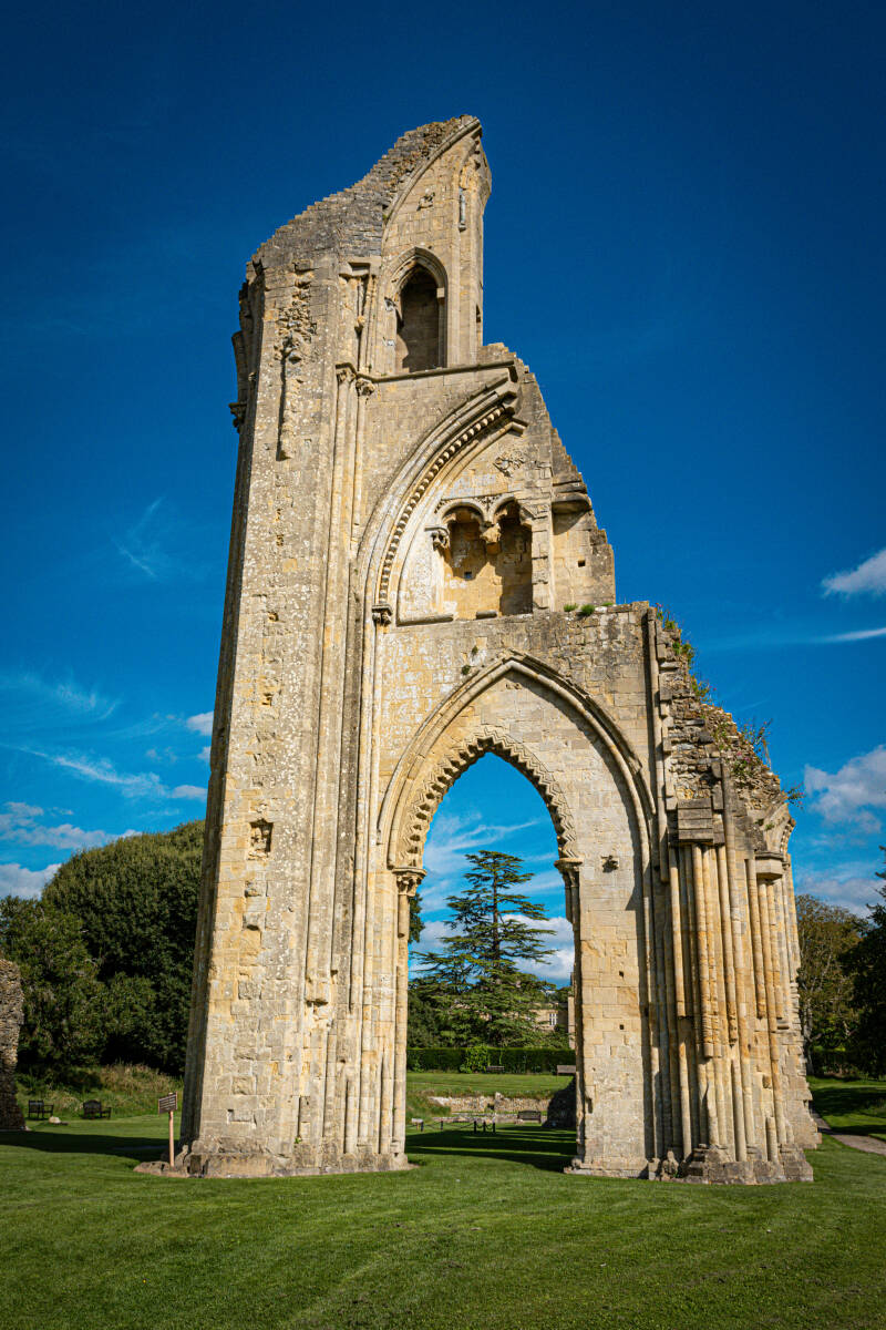 Bij het binnenrijden van Glastonbury spotten we een Lidl, waar we de nodige mondvoorraad scoren. In het centrum van de stad kunnen we pal achter het terrein van de Abbey parkeren. Ook hier werkt de betaalautomaat weer naar behoren. Glastonbury Abbey was een klooster dat z’n oorsprong in de 8e eeuw vindt. Het werd uitgebouwd en vergroot in de 10e eeuw, en jammerlijk door brand verwoest in het jaar 1184. De reconstructie begon vrijwel onmiddellijk daarna. In 1191 werd door de monniken geclaimd dat zij de stoffelijke resten van King Arthur en zijn Guinevere op het terrein hadden gevonden en werd een tombe voor het koningspaar gebouwd. Aannemelijk wordt geacht dat dit meer een publiciteitsstunt van de monniken was, teneinde meer fondsen te werven voor de restauratie van de abdij. Door inbeslagname door de staat ten tijde van Thomas Cromwell en de gelijktijdige “ontbinding van de kloosters” in het hele land, werd de toenmalige abt gevierendeeld als verrader (1539). Hierna is de abdij meerdere keren in verschillende handen gekomen, langzaamaan gestript van z’n kostbaarheden, maar ook bouwstenen, tot aan het begin van de 18e eeuw de abdij een ruïne is geworden. Je kunt je voorstellen dat dit ooit prachtige bouwwerken zijn geweest en zelfs als ruïne zijn ze de moeite waard. We wandelen over het hele parkachtige terrein en zien de kapel, het voormalig klooster en de torens van de hoofdkerk. Verderop staat nog een intacte “keuken van de abt” en in de stad zelf zijn er nog het middeleeuwse George Hotel and Pilgrim’s Inn om bezoekers te kunnen laten overnachten.