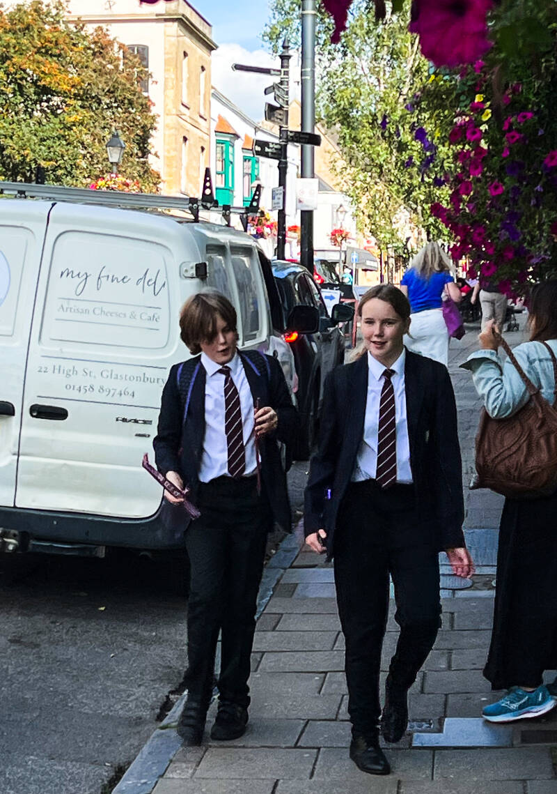 Verder is Glastonbury een centrum voor alternatieve mensen. We zien er gothic, bomenknuffelaars, joint-rokers en runen-lezers. En ook hier, 'very British' schooljeugd in uniform. Op veel stadsmuren zijn mooie teksten en muurschilderingen aangebracht. Talloze winkels brengen esoterische waar aan de man. Leuk om eens rond te snuffelen.