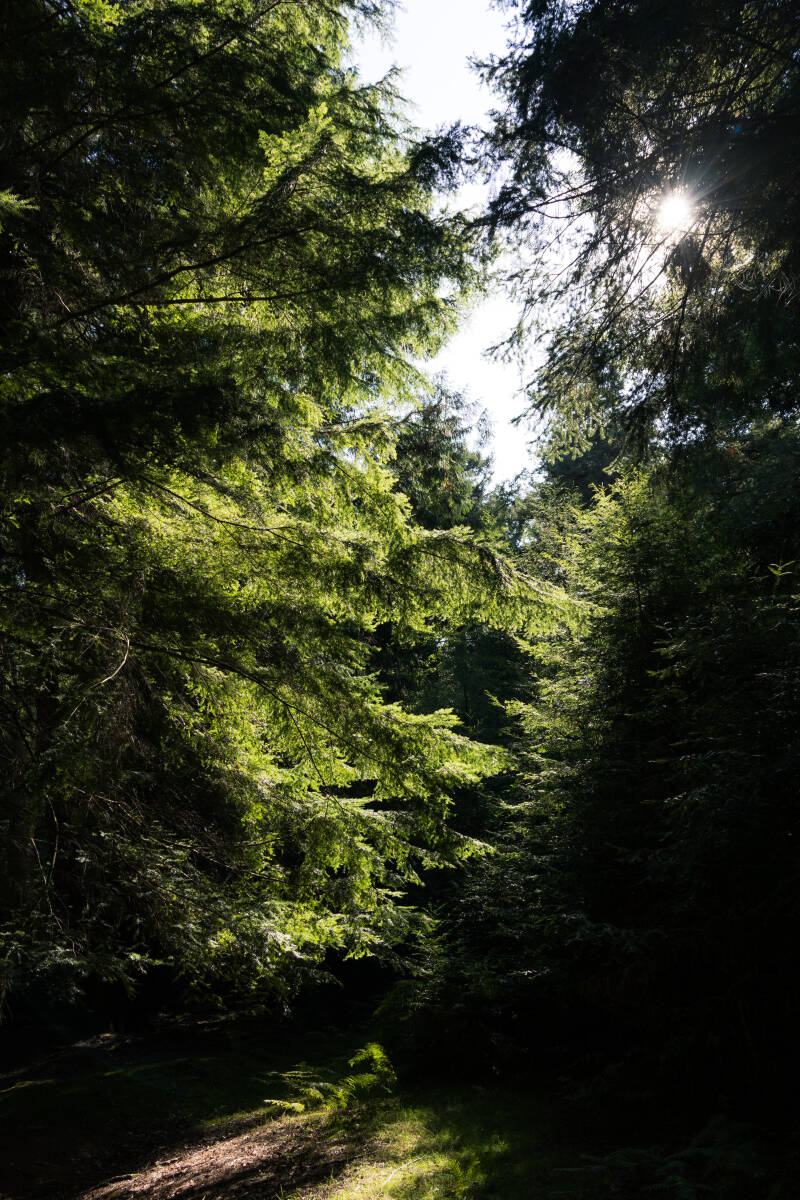 Het is beduidend rustiger dan afgelopen weekend. Na een buiten-lunch (het is nog steeds heerlijk weer) halen we de fietsen van stal en peddelen we naar Blackwater, een heerlijke fietstocht over de heide, langs stromende beekjes, en dan weer door het oerbos. En overal varens.