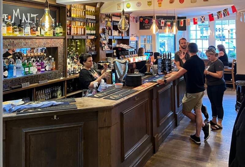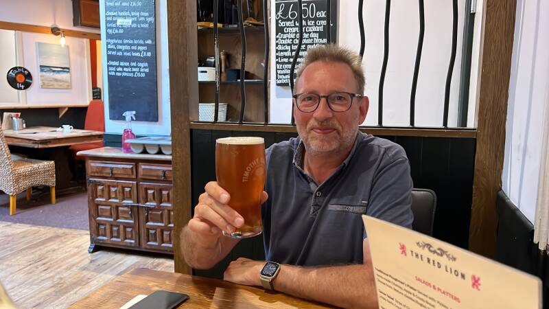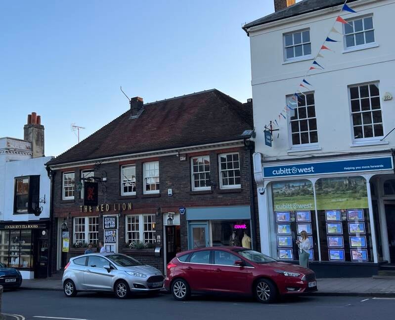 Dan wordt het tijd om kilometers richting oosten te gaan maken. Aanstaande zondagochtend hebben we de Ferry terug van Dover naar Duinkerke. Het idee was om nog een stuk langs de kust te rijden. Maar daarvoor moeten we eerst Southampton en Portsmouth voorbij in het drukke vrijdagmiddag verkeer. Gepland was een camperstop in Newhaven, maar min of meer op de helft van de kilometers komen we langs Arundel, en daar blijkt ook een prima camperstop op de stads-parkeerplekken te zijn. Genoeg files, we parkeren hier. De kust komt morgen wel. Arundel heeft een enorm kasteel voor zo’n klein plaatsje en ook een levendig en klein authentiek centrum. Het betalen van parkeergeld is weer een dingetje want voor tien pond mag je hier op het achterste immense grasveld overnachten met je camper, maar de automaat geeft geen sjoege ondanks dat de optie “overnight” aangegeven staat. Dan maar vier kaartjes van 2,50 geprint en die plakken we achter de camperruit. Een vriendelijke dame die haar hond hier uitlaat meldt dat alleen de uitrij-hekken worden afgesloten. Je kunt er dus pas na 08.00 morgen weer uit. Lopend lukt dat gelukkig wel, en we gaan het stadje in op zoek naar iets te eten. Dat vinden we in een leuke pub, The Red Lion. Een pint gaat er nu ook wel in, net zoals een glas Zinfandel. Cheerio!