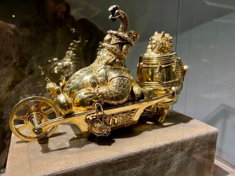 Binnen vergapen we ons aan authentieke ruimtes die zonder uitzondering zijn gevuld met antiek. Wapenkamers, slaapvertrekken, de keuken, de jachtkamers, er is teveel om op te noemen en het is allemaal erg leuk om te zien. Na de rondleiding begeven we ons naar de schatkamer die in de kelders van het kasteel gevuld is met familie-erfstukken. Van antiek wapentuig tot servies en bestek, maar ook heel veel zilver en bladgouden kunststukken, daterend terug tot 1570.